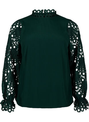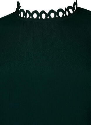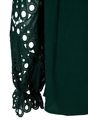 Pusero, jossa on kauniit pitkät virkatut hihat ja koristeellinen kaula-aukko, jossa on nappikiinnitys niskassa. Pusero on valmistettu 100 % viskoosista ja siinä on normaali istuvuus.