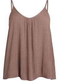 Yksivärinen toppi, jossa on väljä istuvuus, kapeat säädettävät olkaimet ja laskostus edessä pääntiessä. Tämä toppi sisältää 100 % LENZING™ ECOVERO™ -viskoosikuitua, minkä ansiosta toppi on luonnollisen pehmeä ja kauniisti laskeutuva.