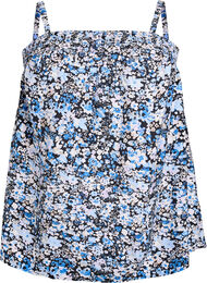 Yksinkertainen ja naisellinen toppi, jossa on kapeat, säädettävät olkaimet, leveä smokattu paneeli rinnassa ja väljä A-linjainen istuvuus, joka tarjoaa miellyttävän laskostuksen. Tämä toppi sisältää 85 % LENZING™ ECOVERO™ Viscose -kuituja, mikä tuo luonnollista pehmeyttä ja laskostusta.