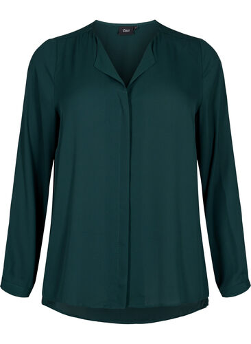 Yksinkertainen ja klassinen paita, jossa on pitkät hihat ja v-pääntie. Lisäksi väljässä paidassa on piilotettu napitus edessä sekä sivuhalkio.