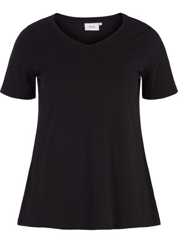 Yksivärinen perus t-paita lyhyillä hihoilla. Se on valmistettu pehmeästä puuvillamateriaalista. Siinä on v-aukko sekä väljä ja mukava malli.
