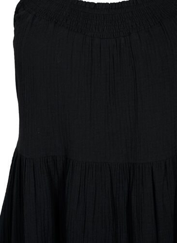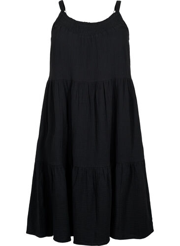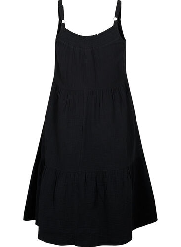 Midimekko ohuilla säädettäilla olkaimilla ja smokkirypytyksellä pääntiessä. Mekko on valmistettu pehmeästä puuvillamateriaalista. Pieni laskostus tekee väljästä A-mallista kauniisti laskeutuvan.
