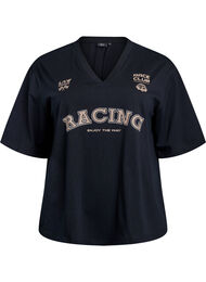 Oversized T-paita 100% puuvillasta sporttisella ja rennolla ilmeellä. T-paidassa on V-pääntie ja löysät, lyhyet hihat, sekä väljä istuvuus, joka takaa mukavuuden koko päivän ajan. Etupuolella on moottoriurheilusta inspiroitunut printti.